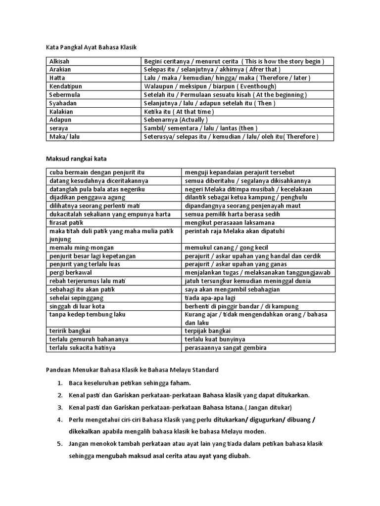 Bahasa Melayu Klasik Stpm Sem 1